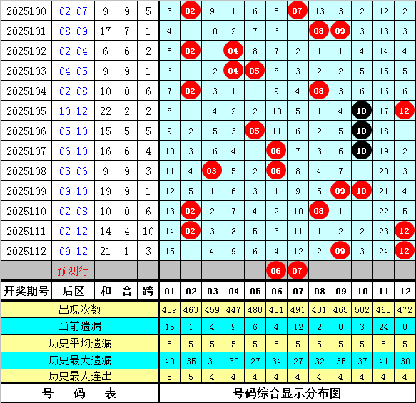 后区分析:在第113期历史同期开奖中,后区奖号全奇组合开出0次,全偶组合开出8次,一奇一偶组合开出9次,本期后区预计出现一奇一偶组合,看好号码03、06、07、11。