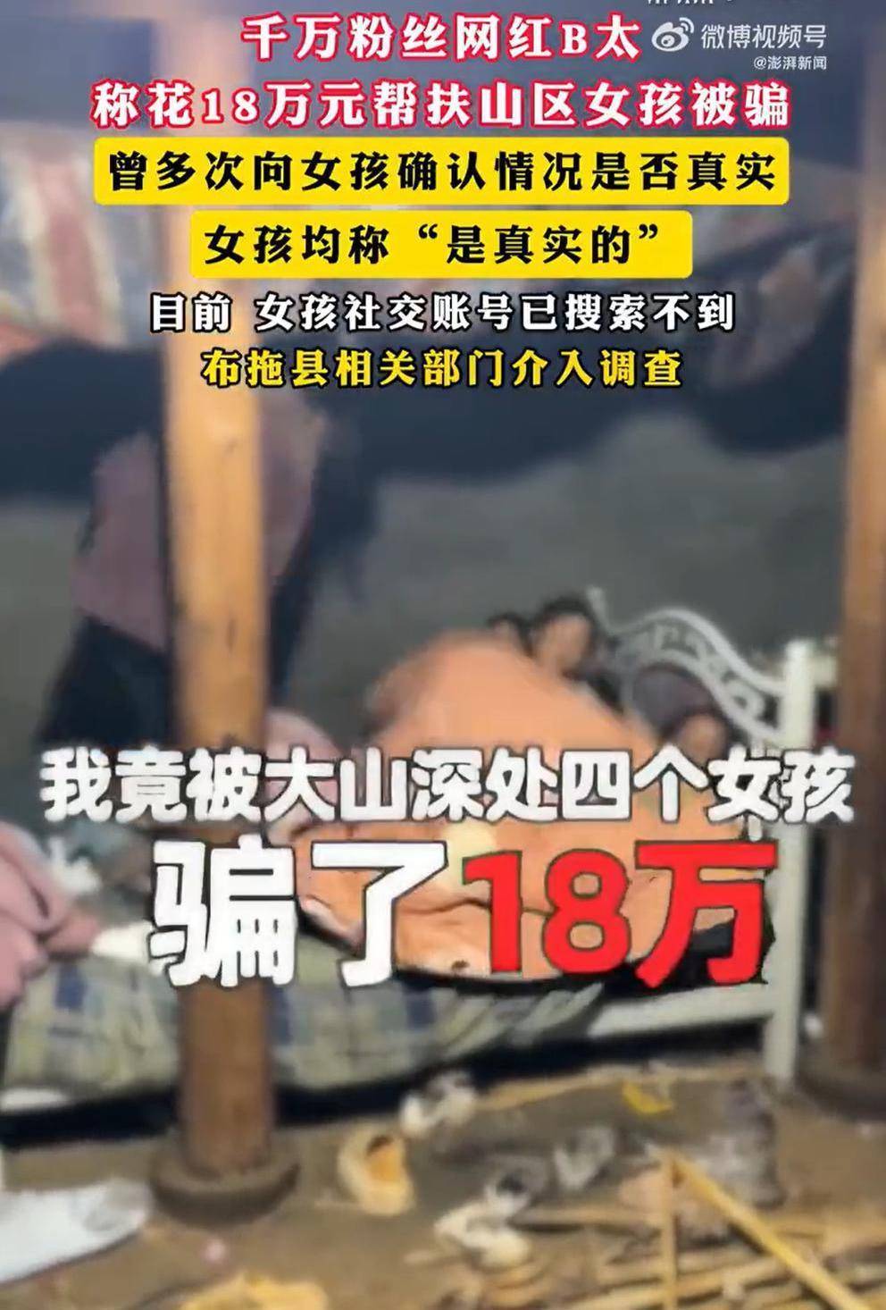 4月13日,千万网红博主@superB太发布视频称,自己在大凉山进行帮扶时遭遇骗局,他花费约18万元帮助四位自称“相依为命”的女孩建房改善生活,事后却发现对方虚构了“孤女抚养三妹、哥哥去世、父亲丧失劳动能力”等困境。此事引发广泛关注,相关话题多次登上热搜。
