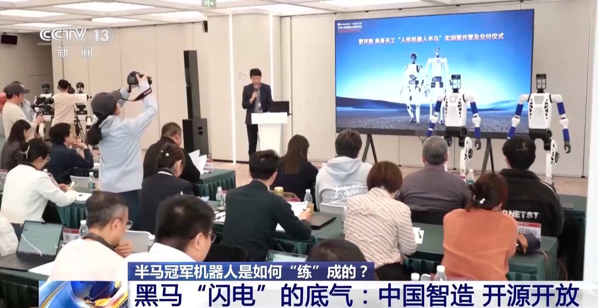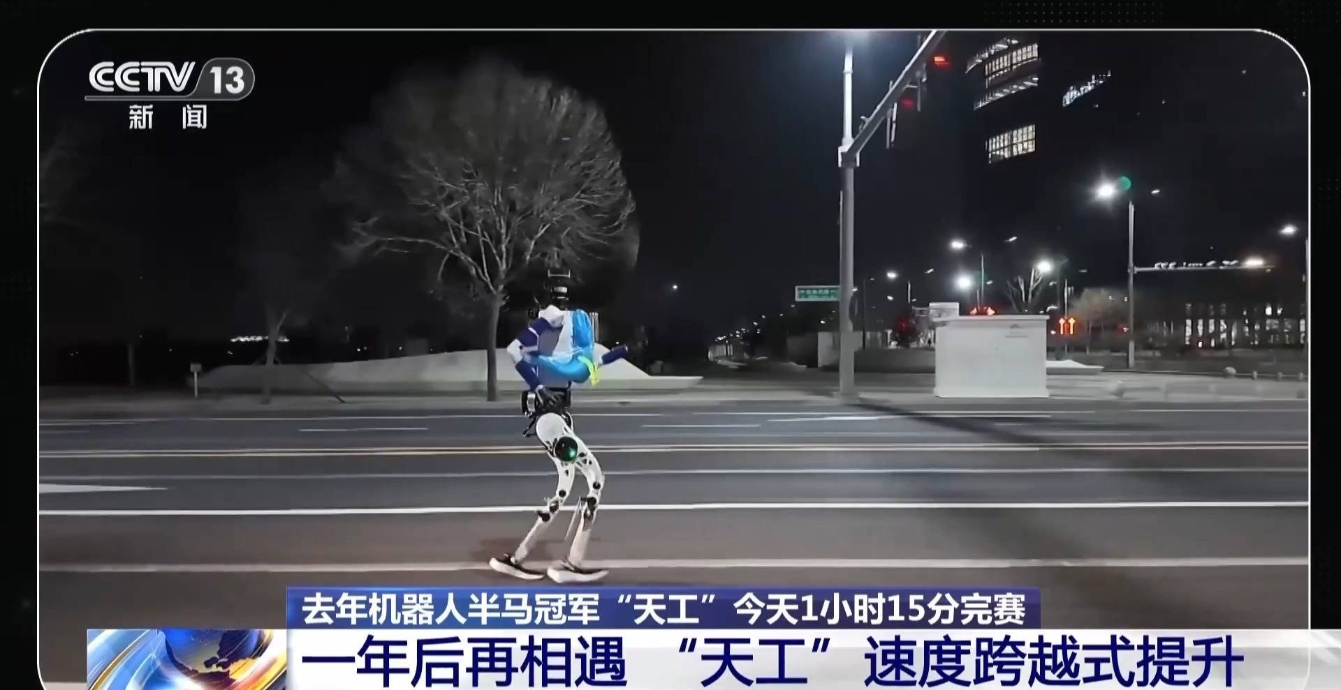 看完今天的比赛,还有网友在问:去年的冠军“天工”去哪儿了。其实,相比于去年2小时40分42秒的夺冠成绩,今年“天工”也大幅提高了自己的成绩,最终1小时15分完赛,展现出了巨大的进步。赛前,总台记者还跟着它体验了一场“夜跑”。
