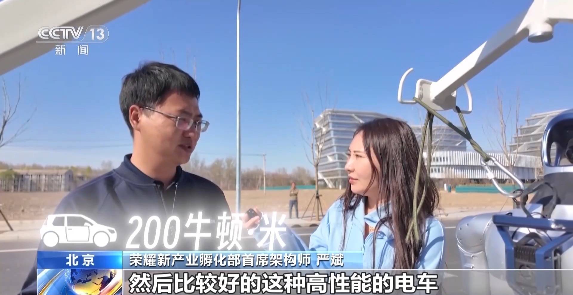 荣耀新产业孵化部首席架构师 严斌:一般家用车的马力,它的性能大概差不多是200多牛顿·米,比较好的高性能电车,差不多是400牛顿·米左右,所以我们机器人的一个关节电机,就相当于汽车那种等级的扭矩性能。