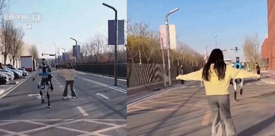 为了测试机器人自主避障和灵活应变突发状况的能力,记者和几位工程师对快速奔跑的机器人进行了围追堵截。机器人都能及时响应,快速躲开记者的拦截。