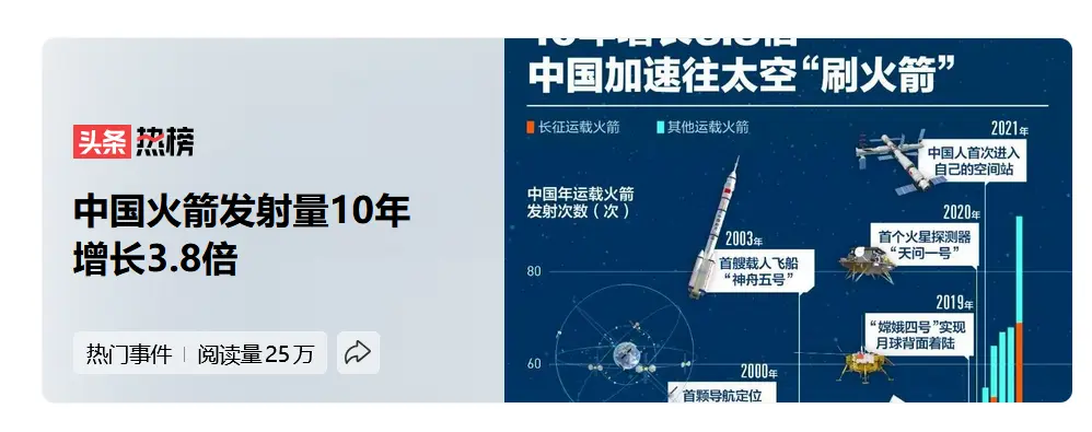 在今年中国航天日之际,我国发布了很多航天领域的重磅消息。包括深空探测与商业航天的管理规范,同时商业航天企业也发布了不少新的计划。有相关媒体做了一个统计,说在过去十年中国火箭的发射次数增长了3.8倍。